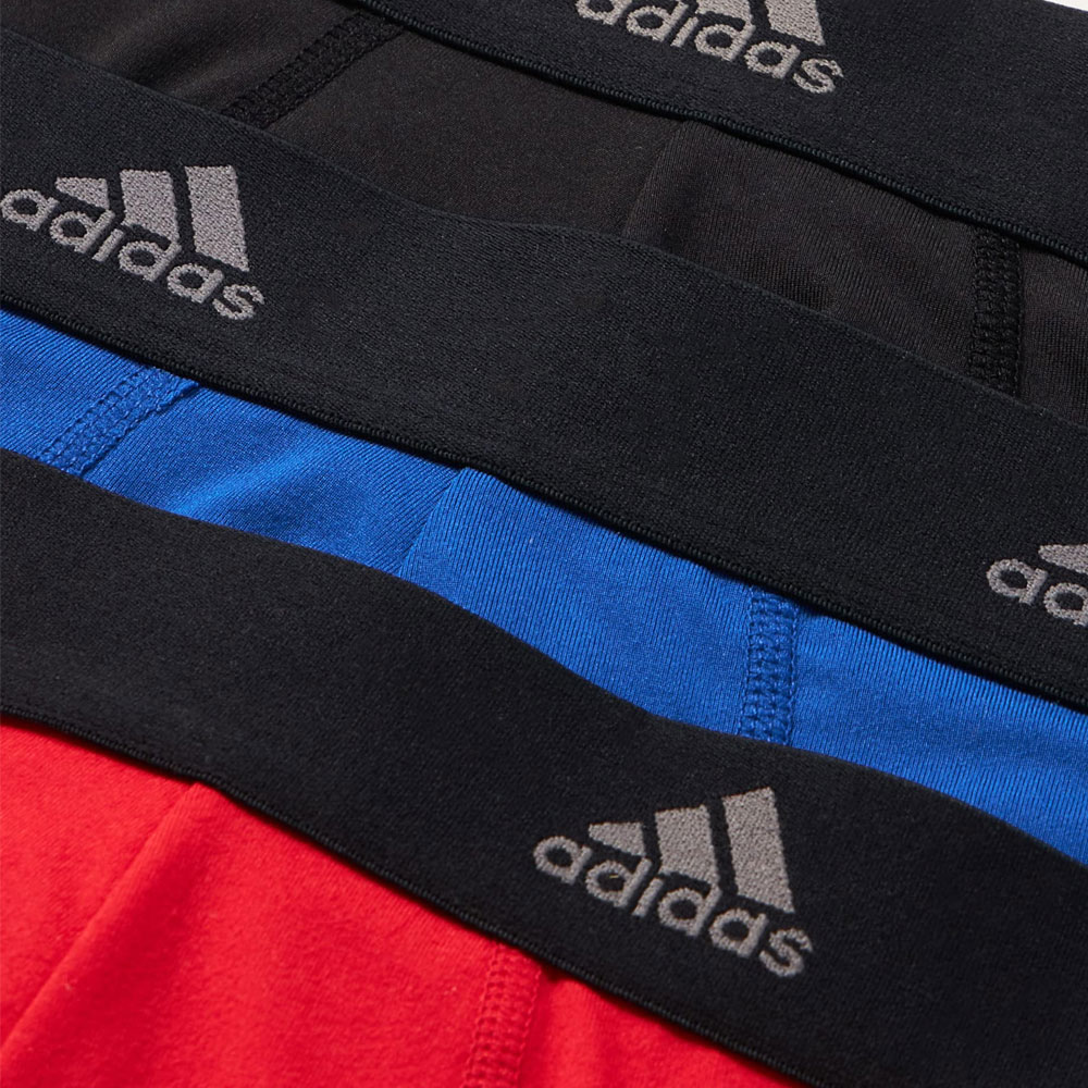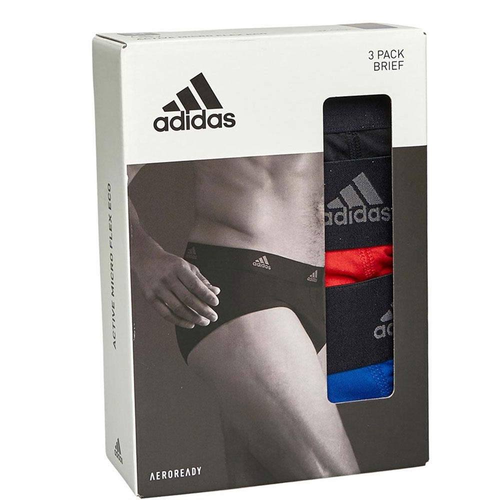 3-pack Adidas slips Active Flex micro. Deze slips zijn gemaakt van zacht microfiber met vochtafvoerende eigenschappen om je droog en fris te houden. Ook zijn ze ontworpen om lang mee te gaan, zijn de slips sneldrogend en schuren ze niet. Dankzij de wasbescherming blijven ze langer nieuw. Daarnaast hebben de slips een voorgevormd kruis dat zorgt voor ultiem comfort. In deze verpakking zitten 3 slips met een elastische tailleband waarin het Adidas logo te zien is.