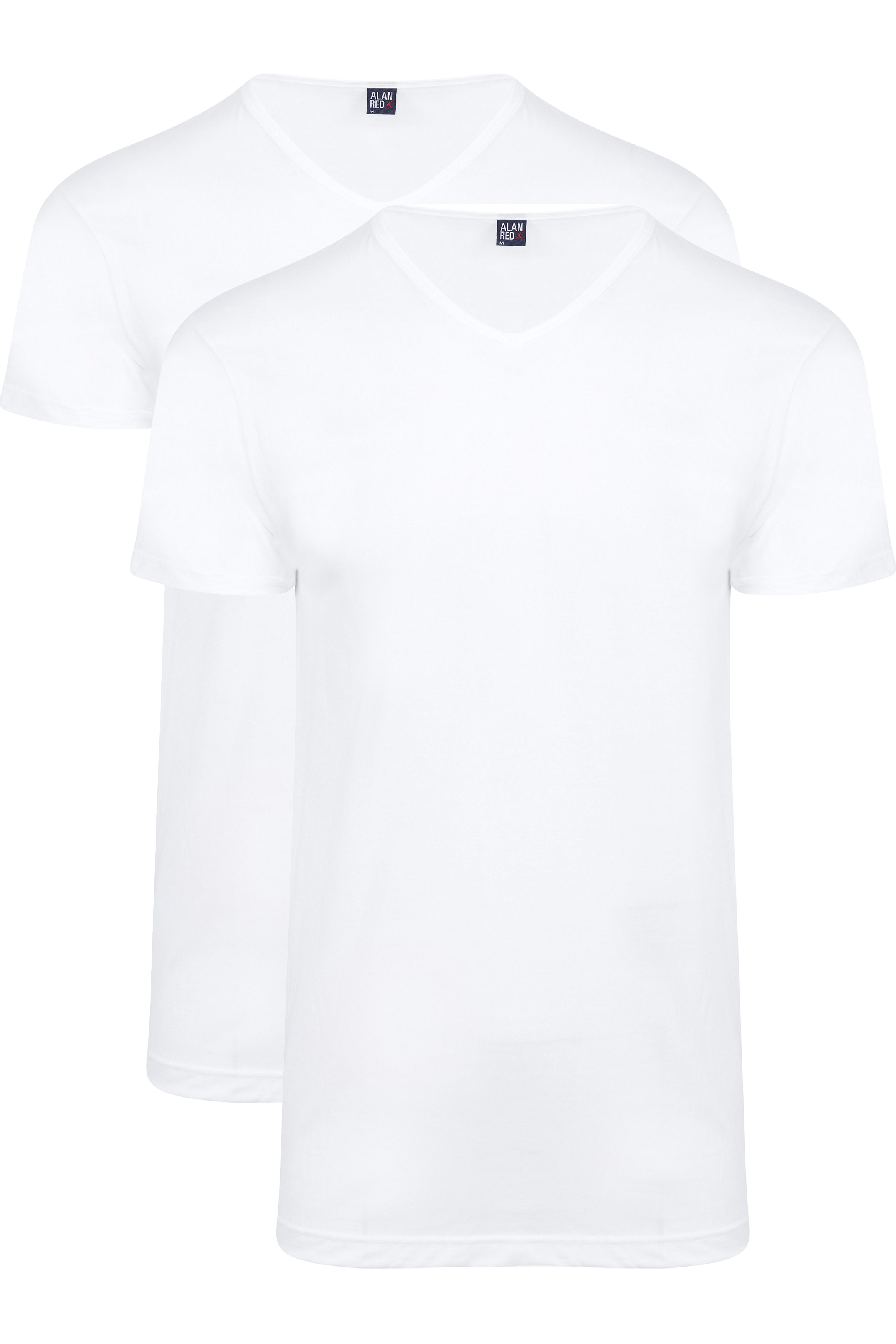 Alan Red Vermont T-shirts extra lang 2-pack. In de verpakking zitten twee effen witte T-shirts. Het model Vermont kenmerkt zich door de rechte pasvorm,de smalle boord en de V-hals. Perfect als ondershirt maar ook als basic V-hals T-shirt op een lente of zomerse dag. Dit T-shirt is gemaakt van 100% hoogwaardig katoen en hij is extra lang zodat het shirt altijd goed in je broek blijft zitten.