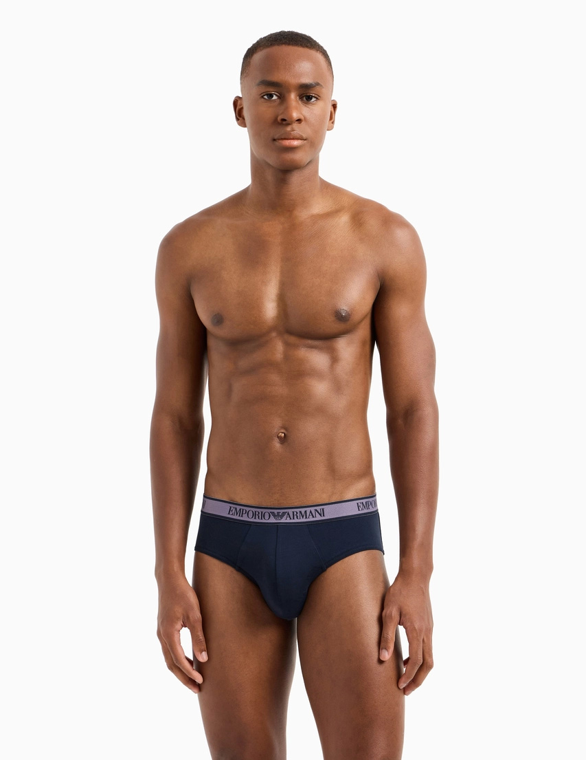 Productinformatie "Armani 3-pack slips blauw-grijs met EA print"