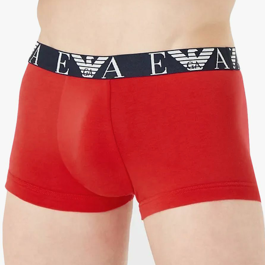 Ben jij fan van het merk Armani? Dan mag dit 3-pack van Emporio Armani niet ontbreken in jouw collectie. De 3-pack bevat zwart, grijs en rode trunks met zwarte taillebanden. De shorts zijn gemaakt van stretch katoen en hebben een elastische tailleband die de trunks op zijn plek houden. Daarnaast hebben de trunks korte pijpjes.