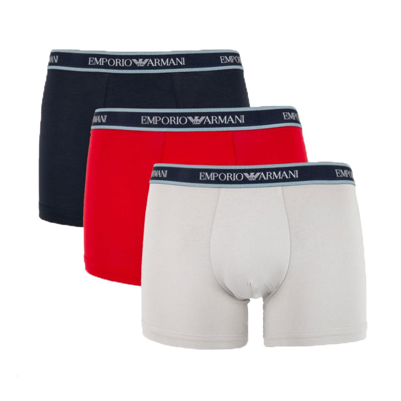 De verpakking bevat drie boxershorts: een rode, een donkerblauwe en een créme kleur. De shorts hebben een elastische tailleband met hierin het Armani merklogo en blauwe randen. Daarnaast zijn ze gemaakt van stretch katoen dat zorgt voor een mooie aansluitende pasvorm en dat ze ook nog eens comfortabel dragen.