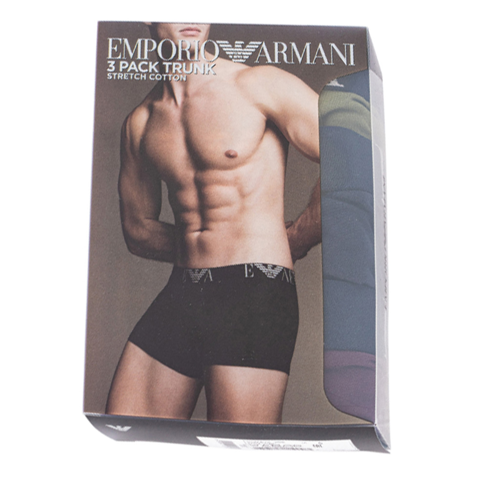 Armani Trunk 3-pack bestaat uit een rode, groen en blauwe boxer.