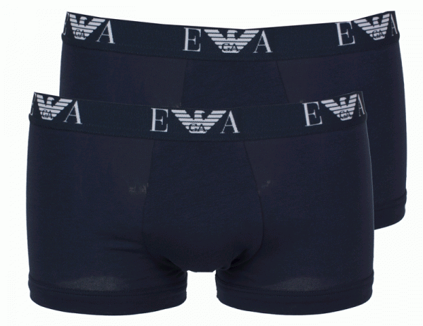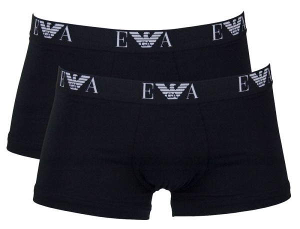 Verpakking met twee effen zwarte boxershorts met een elastische tailleband. In de tailleband is het EA merklogo verwerkt. De shorts zijn gemaakt van stretch katoen en dragen hierdoor comfortabel. Ook hebben ze een aansluitende pasvorm.
