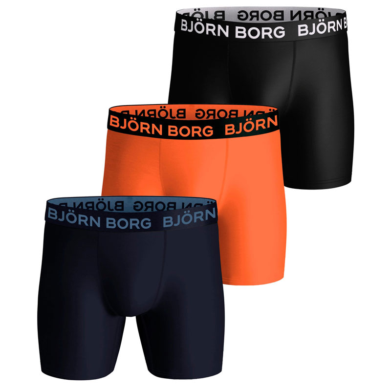 De Björn Borg Performance Boxers 3 pack is een set van drie hoogwaardige sportboxers gemaakt van zacht gerecycled stretchpolyester met vochtafvoerend Hydro Pro-materiaal dat je heerlijk droog en comfortabel houdt. Deze boxershorts kenmerken zich door een halfhoge taille en halflange pijpen en hebben de perfecte pasvorm om optimaal te kunnen presteren. Ze zijn afgewerkt met gladde naden en elastiek om schuren te voorkomen. De zachte elastische logotailleband van microvezelstof biedt extra comfort en rondt dit design kenmerkend af.