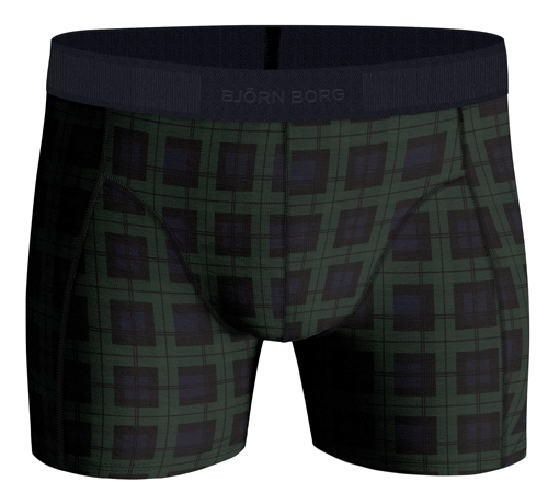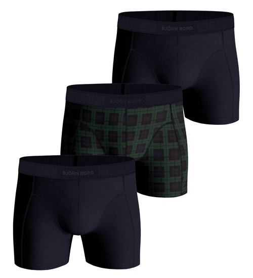 In de verpakking zitten twee effen blauwe boxershorts en een blauw met groene ruitjes print. De shors zijn voorzien van een elastische tailleband met hierin het Bjorn Borg merklogo. Daarnaast hebben ze halfllange pijpen en een half hoge taille. De boxershorts zijn gemaakt van stretch katoen. Hierdoor hebben ze een mooie pasvorm en dragen ze comfortabel.