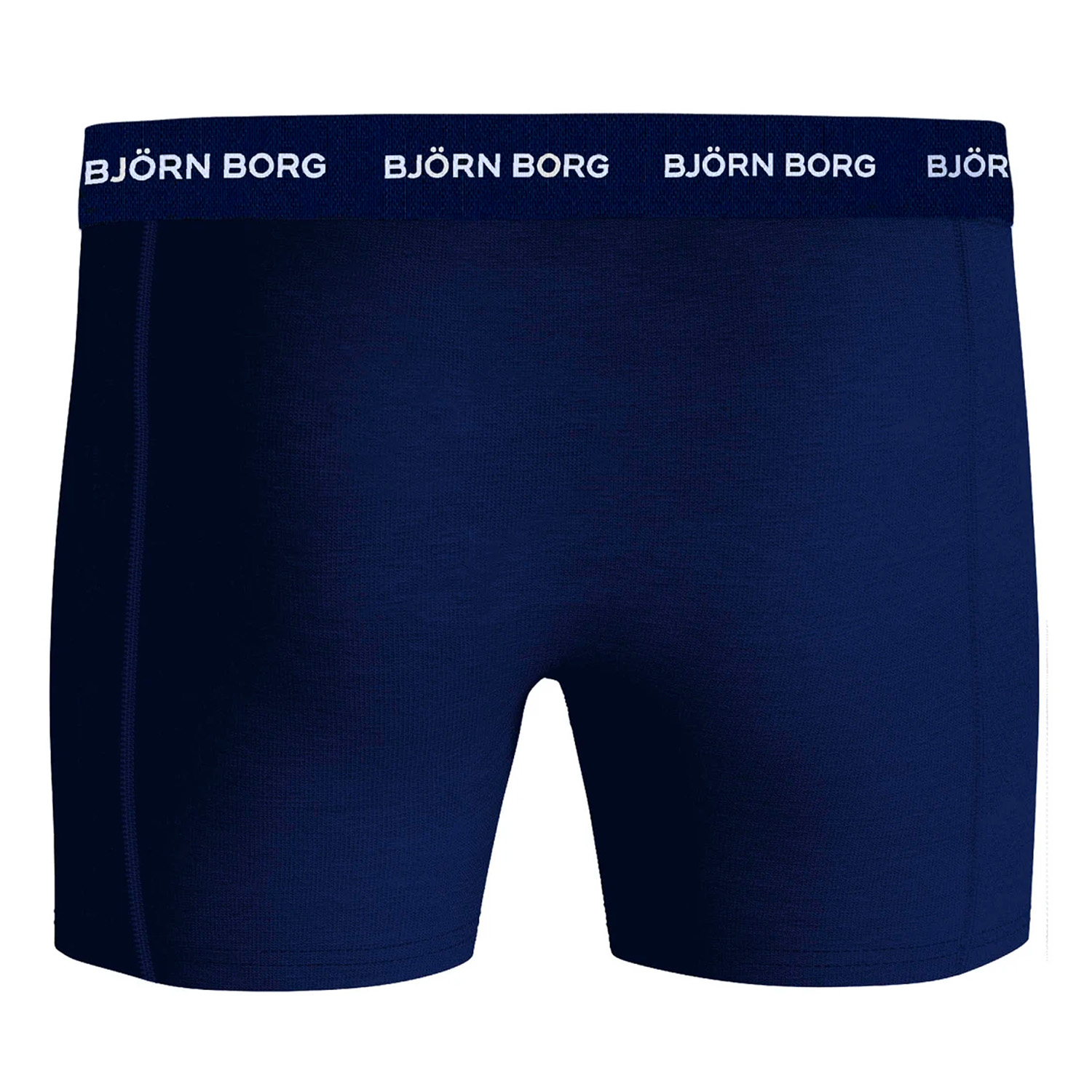 De Björn Borg Cotton Stretch Boxer 3-pack is een set van drie onmisbare boxershorts in zacht stretchkatoen waarvan twee effen en een met blauwe blader print.