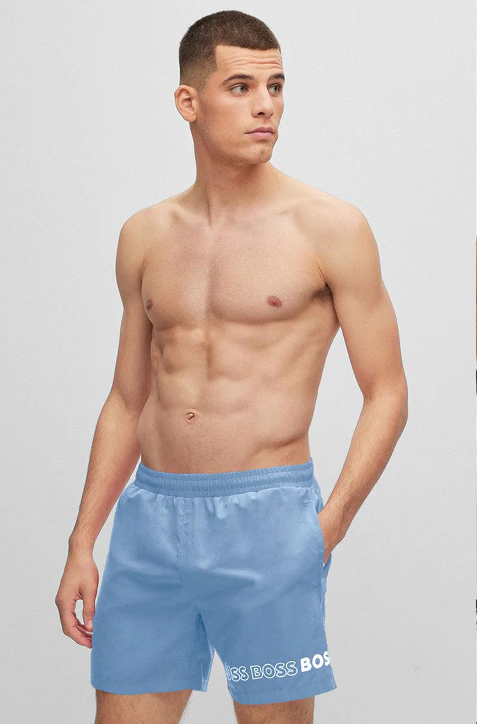 Dolphin zwemshorts van BOSS voor heren. Een korte zwembroek in een opvallende blauwe kleur.
