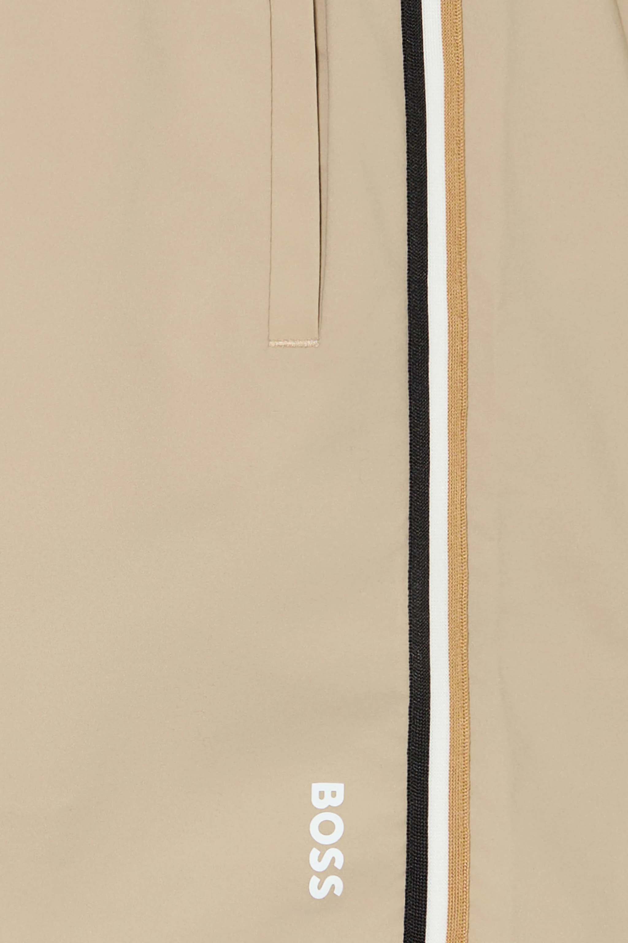 De BOSS Iconic zwemshort is een sportieve heren zwembroek met een comfortabele pasvorm. De short is voorzien van een binnenbroek en een elastische tailleband met trekkoord. Dankzij de sneldrogende stof is deze zwemshort ideaal voor strand, zwembad en vakantie. Door de effen van kleur is deze zwemshort tijdloos. Ook heeft de zwembroek steekzakken aan de zijkanten en een handig kleiner zakje op de achterzijde. De zwembroek is sneldrogend.