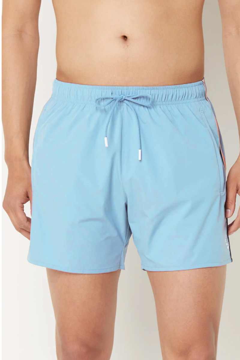 Ga stijlvol het water in met de BOSS Zwemshort Iconic in lichtblauw. Deze short, gemaakt van 100% polyester, biedt comfort en een moderne look. Het subtiele BOSS-logo op de pijp voegt een luxe touch toe. Met een buitenlengte van 37 cm (maat M) en een elastische tailleband zit hij altijd perfect. Ideaal voor een dag aan het strand of bij het zwembad!