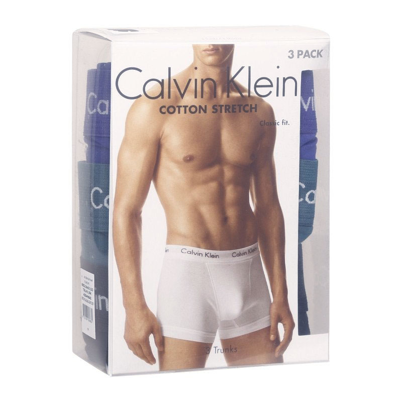 Calvin Klein boxershorts 3-pack. Deze 3-pack bevat boxers in de kleuren zwart, groen en blauw.