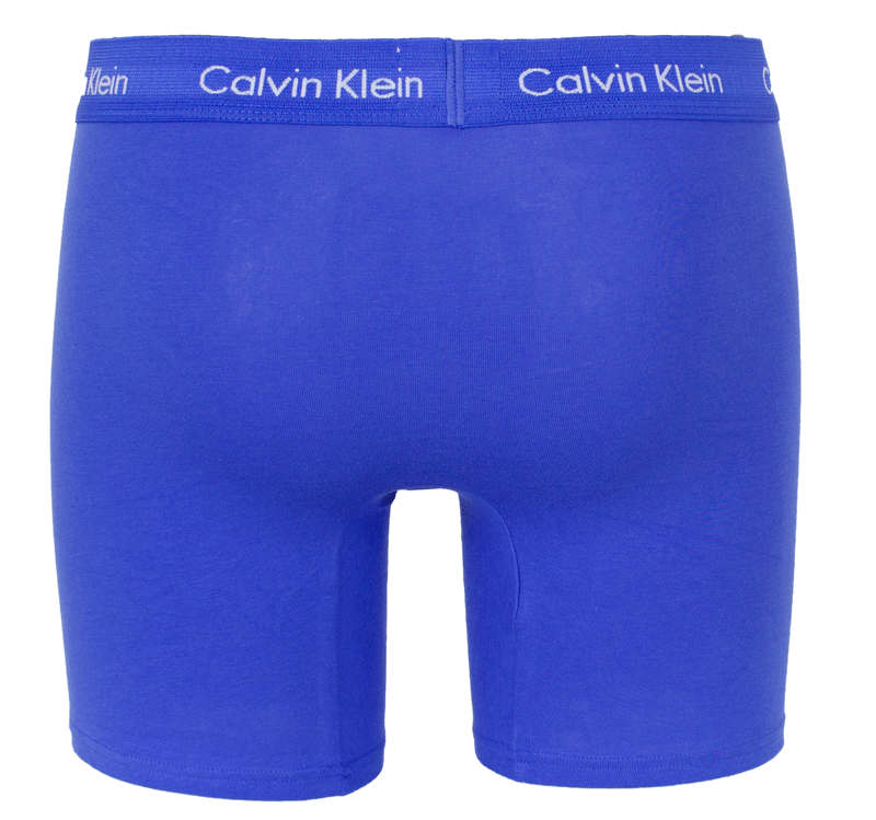 De verpakking bevat drie effen blauwe boxershorts. Daarnaast zijn ze voorzien van een elastische tailleband met het Calvin Klein logo hierin verwerkt. Ook hebben de shorts lange pijpjes.
