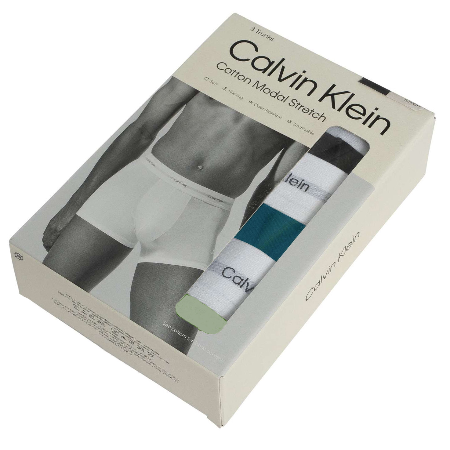 De Calvin Klein modal stretch trunk bieden een perfecte balans tussen comfort en stijl. Vervaardigd uit een zachte katoen-modal-elastaan mix, voelen ze heerlijk aan op de huid en bieden ze optimale bewegingsvrijheid. De klassieke mid-rise pasvorm sluit naadloos aan, terwijl de iconische elastische tailleband met het Calvin Klein-logo zorgt voor een tijdloze en moderne uitstraling. Deze set van drie witte trunks is een must-have voor wie houdt van minimalistische luxe en dagelijks comfort, trunks hebben korte pijpjes.