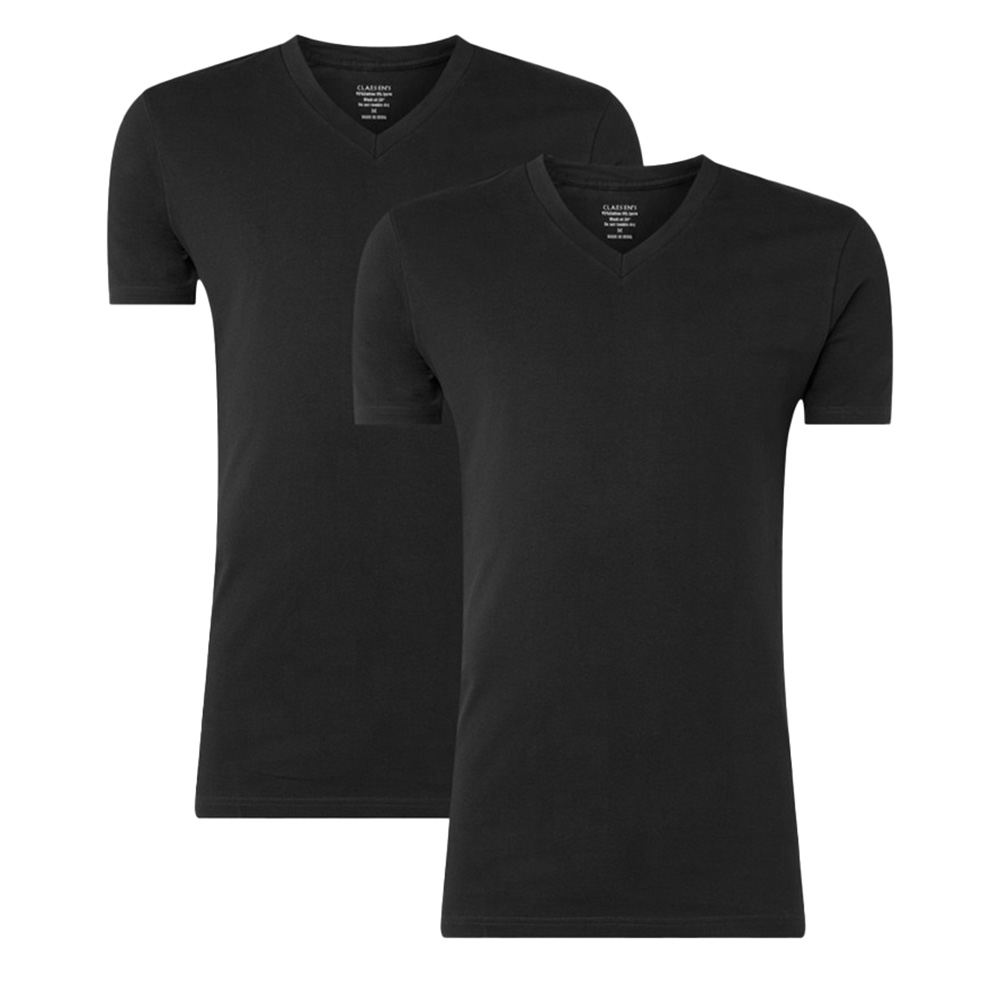 Claesens T-shirt V-hals stretch 2-Pack zwart