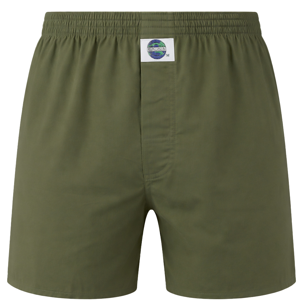 Deze wijde boxer van Deal heeft een elastische tailleband en een gulp met knoopsluiting. Onder de tailleband zit een aangehecht label waarin het Deal logo te zien is. De 100% katoenen boxer is groen van kleur. Deal boxers zijn verkrijgbaar in diverse prints en kleuren.