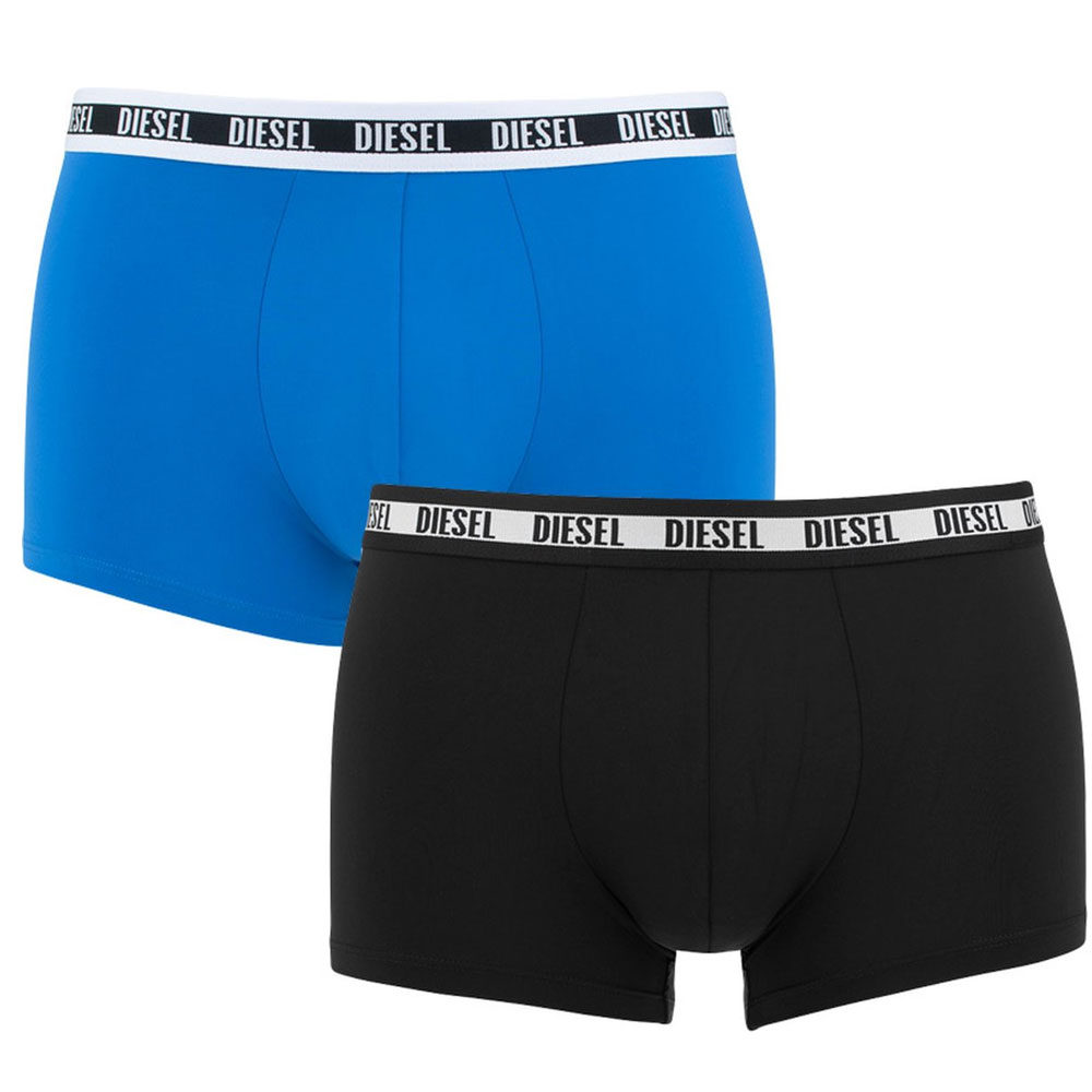 De verpakking bevat een effen zwarte en een effen blauwe boxershort. De shorts zijn voorzien van een elastische tailleband met hierin een heralend Diesel logo. Ook zijn de boxershorts gemaakt van microfiber. Microfiber is een materiaal dat ademt, aanvoelt als tweede huid en ervoor zorgt dat vocht beter word afgevoerd. Deze 2-pack is ook te verkrijgen in het zwart met rood.