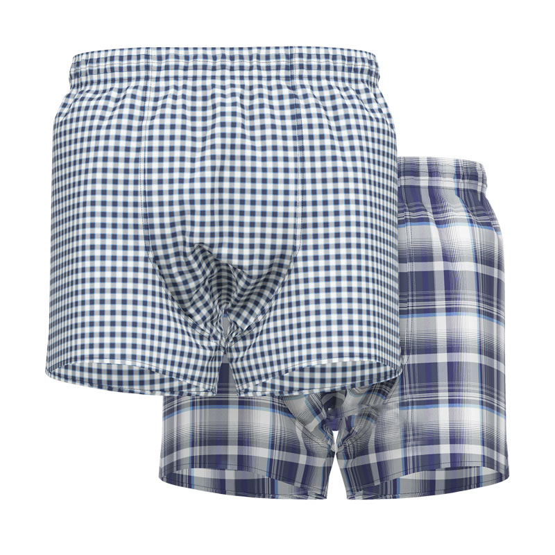 Klassieke heren boxers van Gotzburg. De verpakking bevat twee blauwe wijde boxershorts met ruitpatroon. Voorzien van gulp, comfortabel en stijlvol.