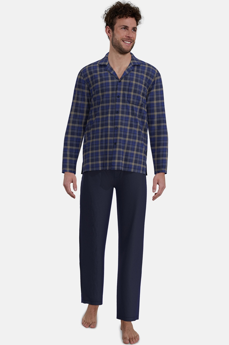 Gotzburg doorknoop pyjama flanel blauw