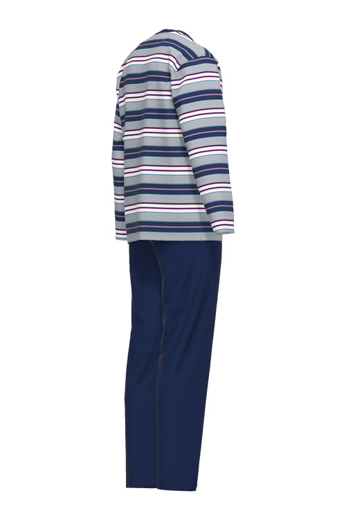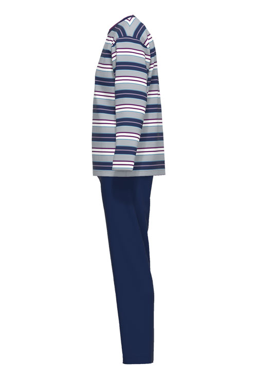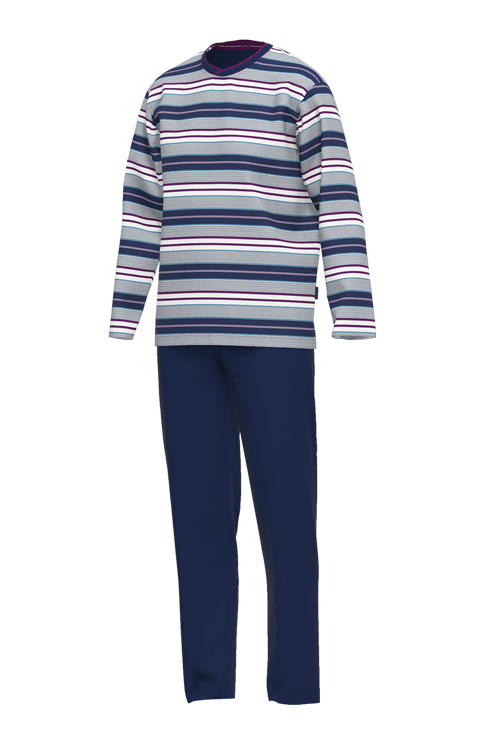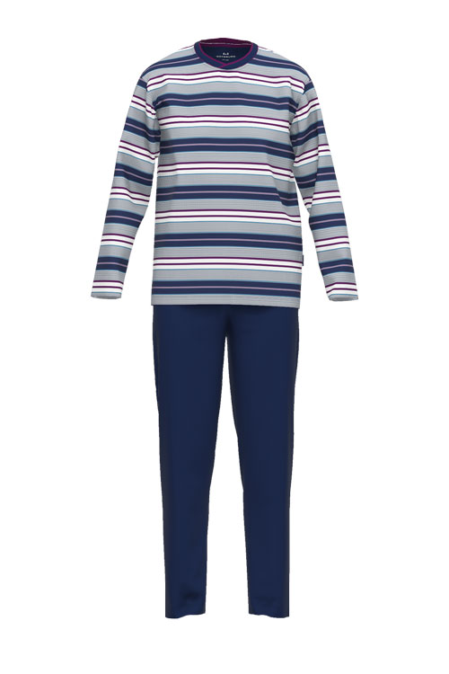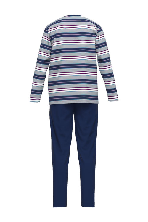 Een zeer comfortabele herenpyjama van Götzburg met lange mouwen en boorden. De extra ademende eigenschappen van de pyjama zorgen voor een droog gevoel op de huid wat het comfort ten goede komt.