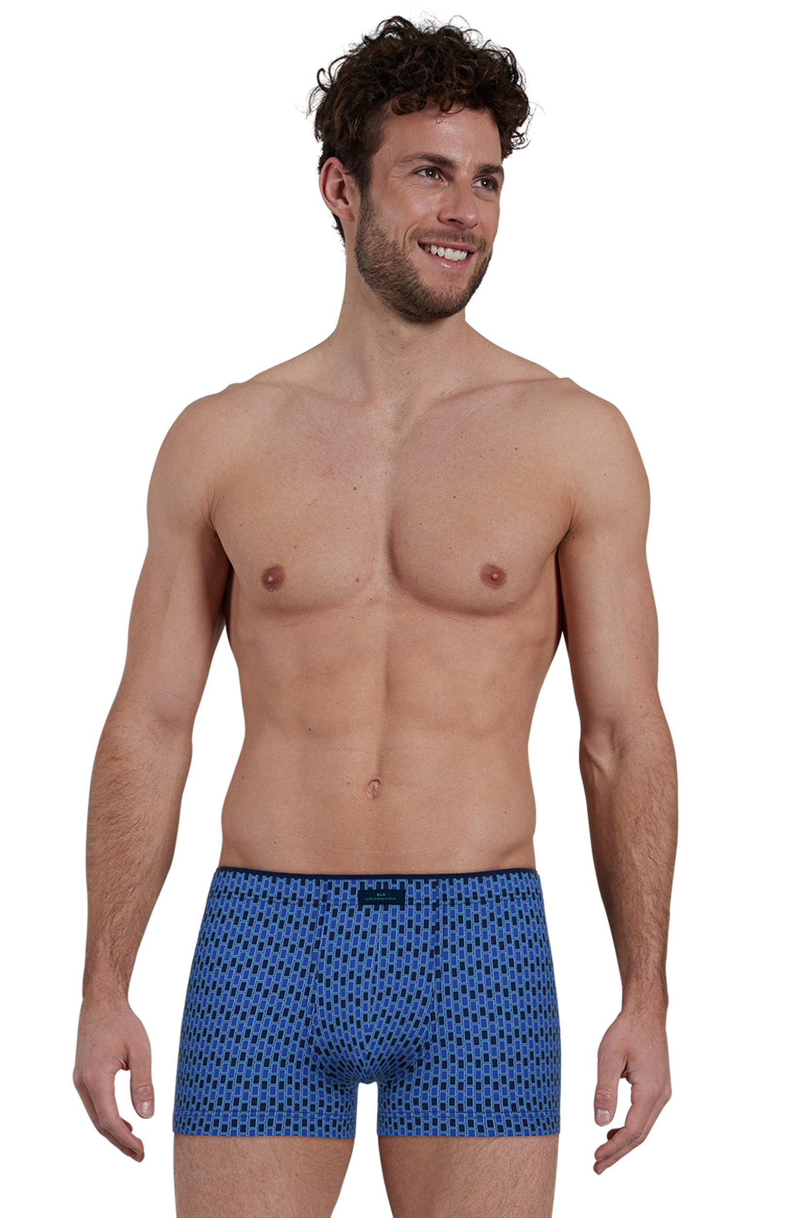 De strakke boxershort is blauw met print en heeft een elastische tailleband met hierin een label met een knoopje. De short is gemaakt van microfiber wat ervoor zorgt dat hij comfortabel draagt en voelt als een tweede huid.