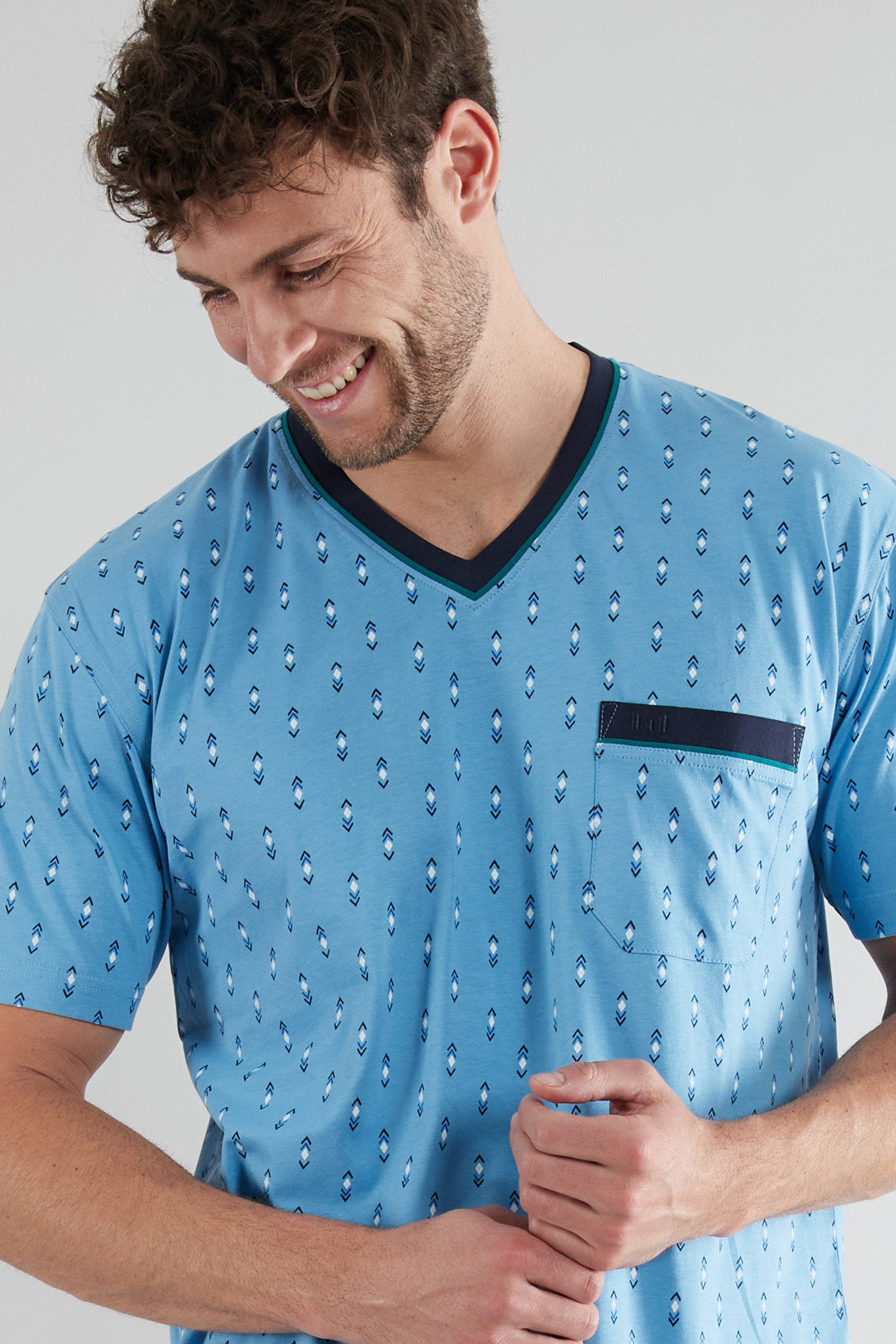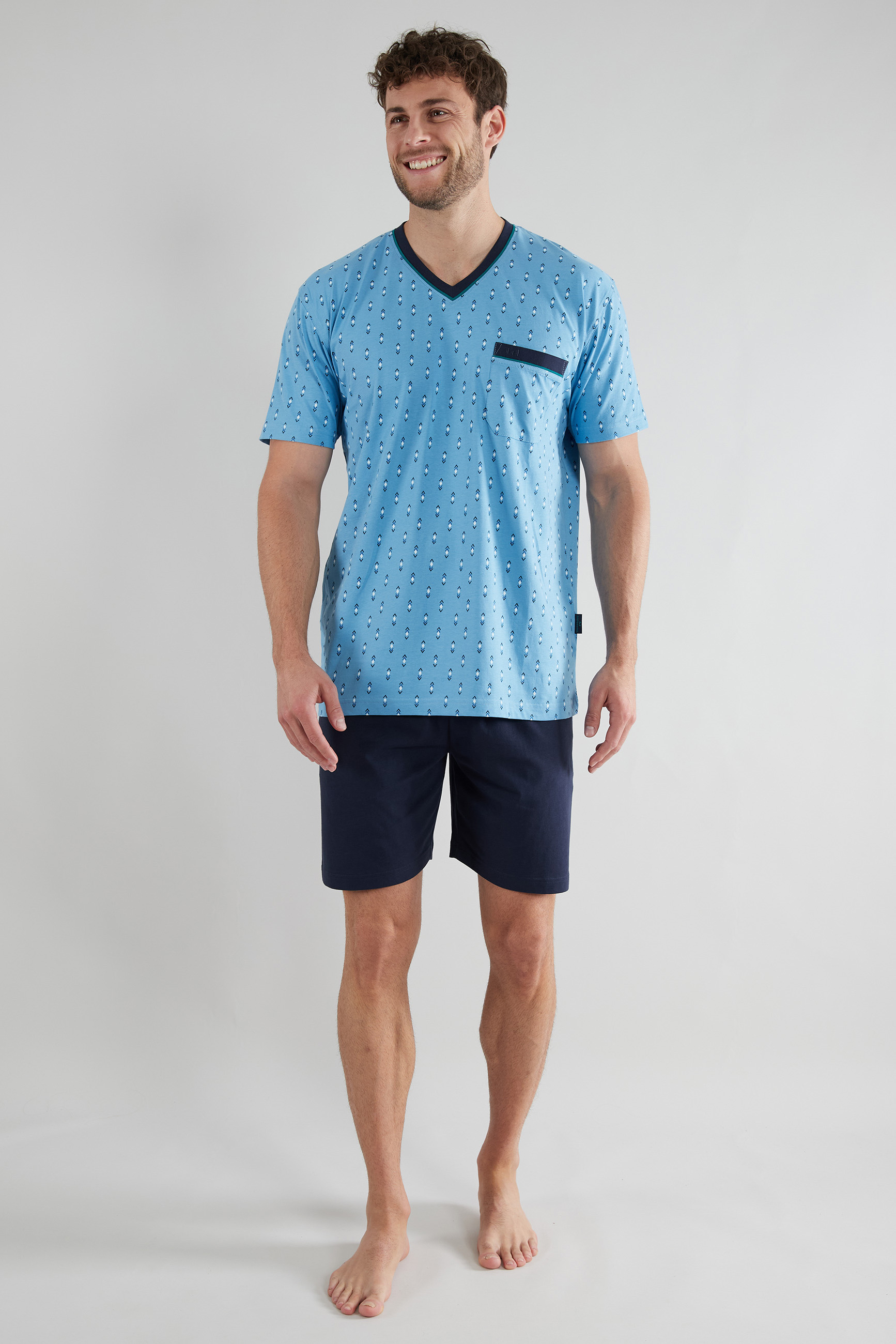 Productinformatie "Gotzburg shortama V-hals blauw met print "