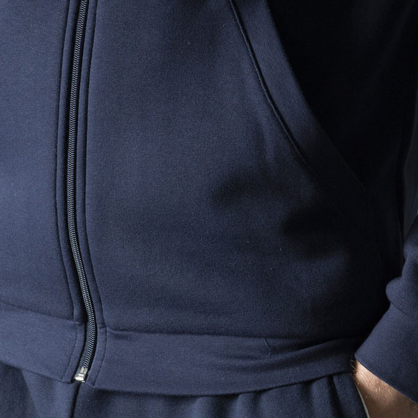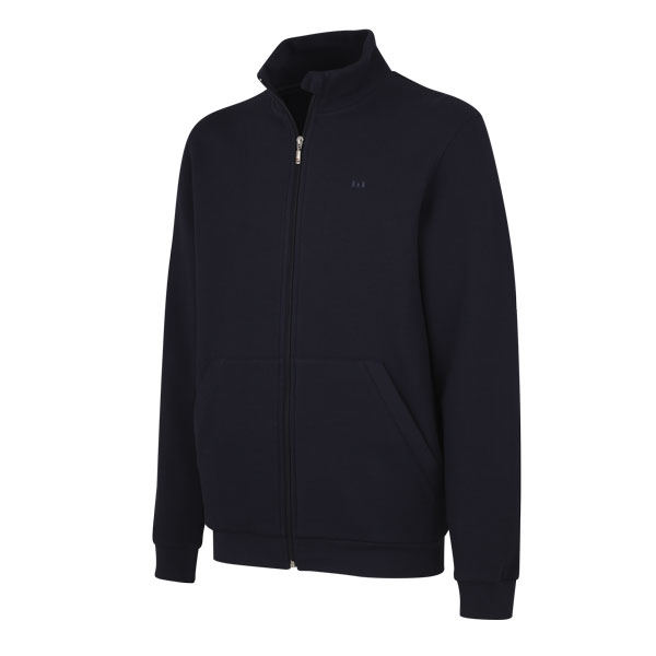 Een mooi kwaliteits katoenen heren huispak vest van Gotzburg. Dit donkerblauwe heren sweatvest voelt zacht aan en bied warmte. Het vest heeft een casual look en kan gemakkelijk gecombineerd kan worden. Het jack heeft lange mouwen en twee zakken. Aan het uiteinde van de mouwen en aan de onderkant zit een boord waardoor het jack op zijn plaats blijft zitten. In het midden van het vest zit een rits en het heeft een opstaande boord.