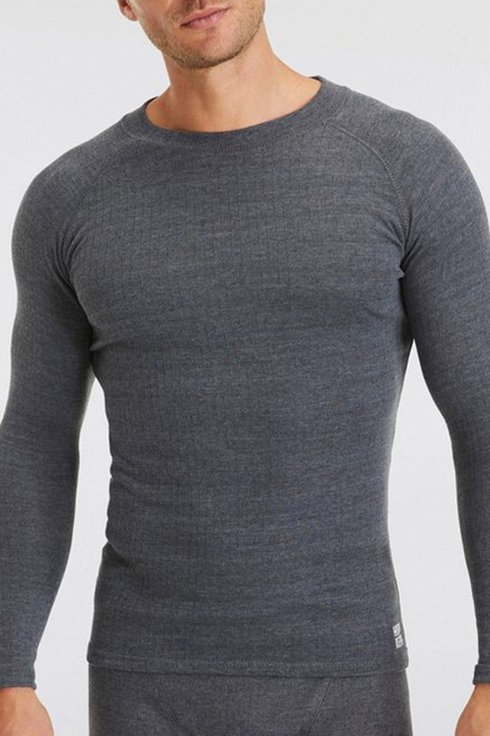 Thermoshirt Heat Keeper van Apollo. In de verpakking zit een effen grijs Thermoshirt met lange mouwen en een ronde hals. Vanwege de hittewerende technologie binnenin zal dit Thermoshirt je lichaamstemperatuur beter reguleren. Het shirt houdt je warm en helpt je droog te blijven. De Heat Keeper heeft een TOG ( Thermo Overall Grade ) rating van 0,45. Hoe hoger de TOG-waarde, hoe moeilijker de warmte door de stof kan ontstnappen. In de Heat Keeper collectie van Apollo is ook de Thermo onderbroek in dezelfde kleur verkrijgbaar.