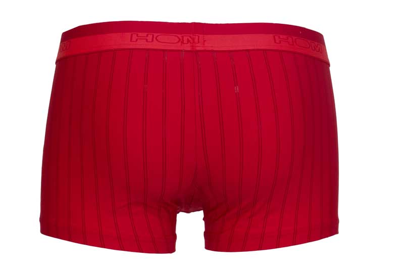 De boxershort is effen rood van kleur en heeft een subtiel streep patroon. De short is gemaakt van microfiber en voelt hierdoor aan als een tweede huid. Hij heeft een aansluitende pasvorm en een elastische tailleband met het Hom merklogo hierin verwerkt.