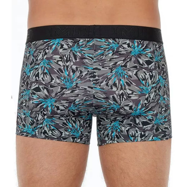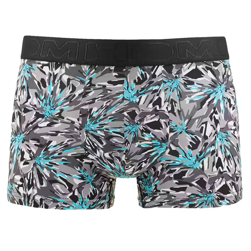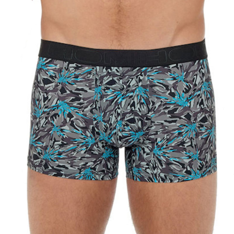 HOM boxershort met print. De boxershort is zwart/grijs met blauw dynamische print. De short heeft een elastische tailleband met Hom merklogo hierin verwerkt. Daarnaast is hij gemaakt van een mix van polyamide en elastaan voor een soepele pasvorm. Hij sluit mooi aan op je lichaam en draagt comfortabel.