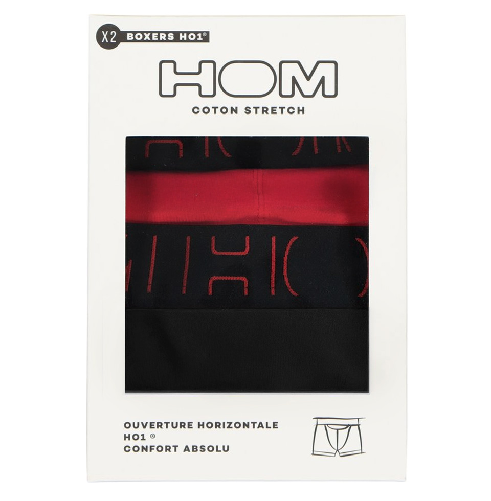 Deze 2 pack boxershorts van de serie boxerlines van Hom zijn rood en zwart van kleur en behoren tot de Ho1-lijn. Dit houdt in dat de boxershorts zijn voorzien van een unieke horizontale gulp.