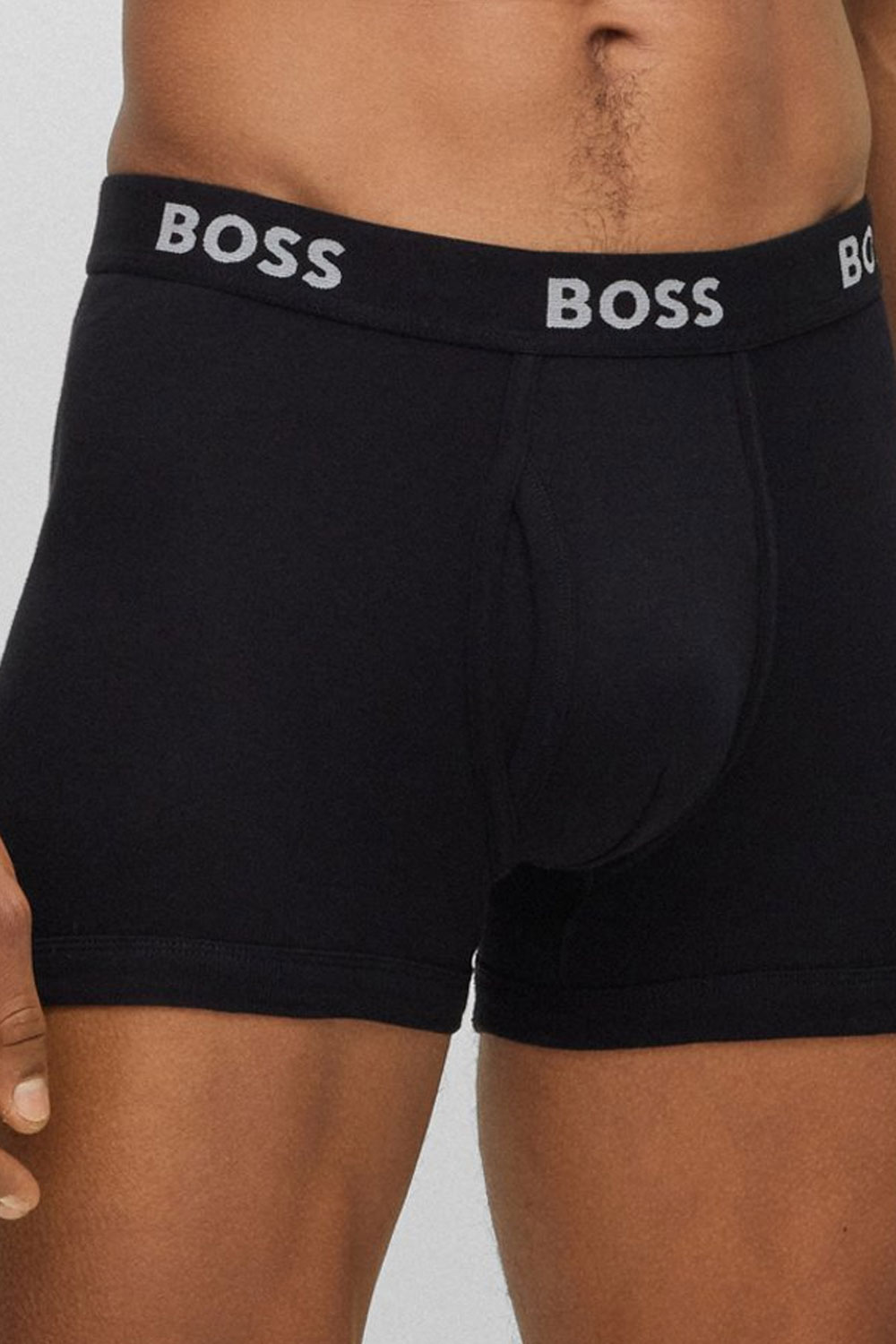 Deze set van vijf BOSS boxershorts voorzien van gulp. Deze boxers hebben middel lange pijpjes en een nauwsluitende pasvorm. De verpakking bevat vijf effen zwarte boxershorts. Daarnaast zijn ze voorzien van een elastische tailleband met het kenmerkende BOSS merklogo.