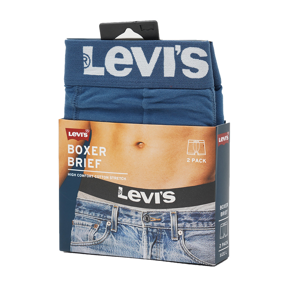In de verpakking zitten twee jeans blauwe boxershorts met een elastische tailleband waarin het Levis merklogo te zien is. De shorts zijn gemaakt van stretch katoen en dragen hierdoor comfortabel en sluiten mooi aan.