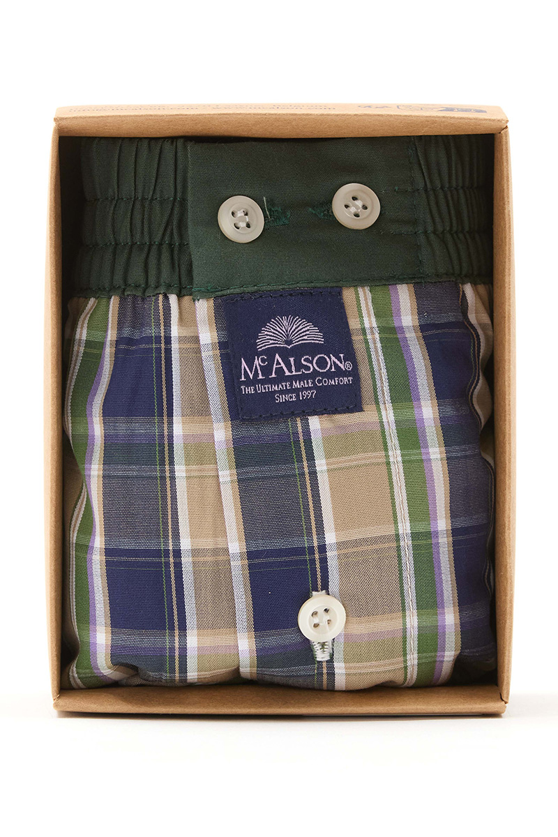 McAlson Boxershorts staan bekend om zijn unieke prints en comfort. Het merk werkt samen met Europese fabrikanten. De boxers zijn van de hoogste kwaliteit dankzij de langdurige samenwerking en het kiezen van de beste stoffen. Door de 100% katoenen onzichtbare steun heeft de wijde boxer het comfort van een slip. McAlson heeft gekozen voor een Amerikaanse snit. Aan de achterzijde is een derde stuk stof geplaatst. Hierdoor blijft de boxer goed op zijn plek en komt hij niet op vervelende plekken zoals in de naad. De 100% katoenen stoffen zorgen voor zacht en ademend ondergoed.
