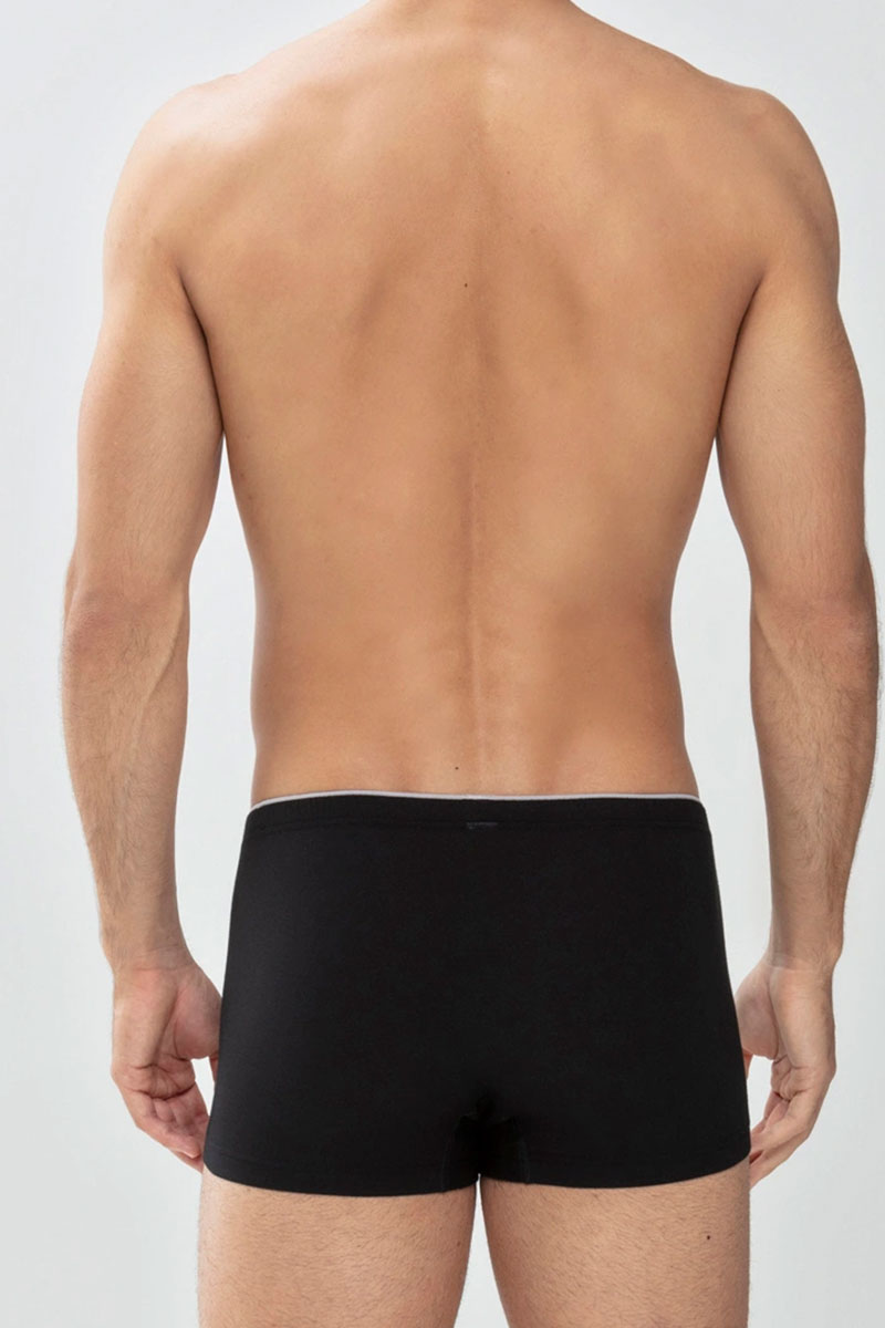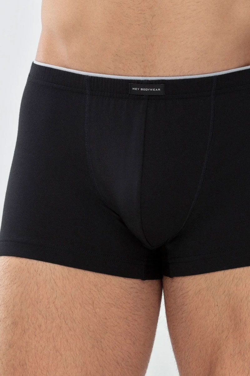 Boxershort van Mey dry cotton zwart met een wat hogere tailleband en smalle grijze bies. De short is gemaakt van een unieke soort Dry Cotton wat inhoudt dat de stof luchtdoorlatend is en zich aanpast aan het lichaamstemperatuur. Het ondergoed van Mey staat bekend om de goede kwaliteit en en het comfort.
