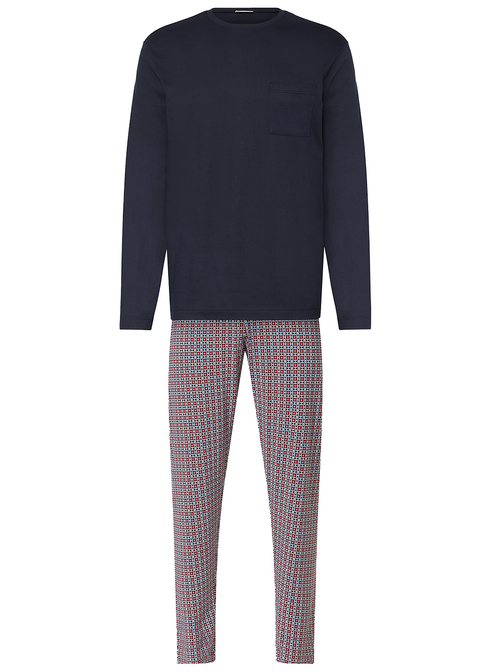 Zoek je ultiem comfort voor je nachtrust? De Mey Pyjama uit de Red Tile serie biedt precies dat. Deze stijlvolle set, bestaande uit een donkerblauw shirt met lange mouwen en een trendy pyjamabroek met blauw-witte print, zorgt ervoor dat je er niet alleen goed uitziet, maar je ook heerlijk voelt.
