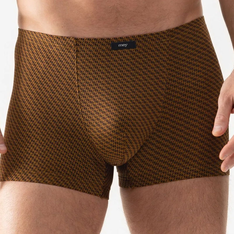 Boxershort van Mey. Deze shorty is cognac van kleur en hij heeft een all-over print. Hij is voorzien van een elastische tailleband met geweven merk label. Daarnaast heeft de boxershort korte pijpjes en een mooie aansluitende pasvorm.