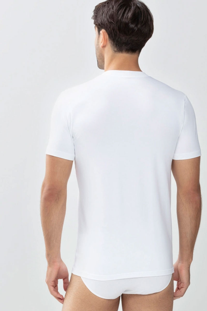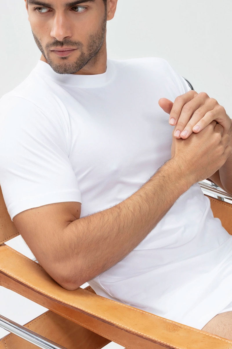 Mey T-shirt Olympia Dry cotton. Dit effen T-shirt is een comfortabel ondershirt met hoge boord. Deze boord is extra elastisch zodat deze goed in model blijft. Het T-shirt is samengesteld uit natuurlijke- en microvezels voor een ademende werking. De unieke Coolmax-vezel heeft een vochtregulerende functie die ervoor zorgt dat de huid fris en droog blijft.