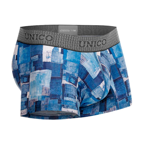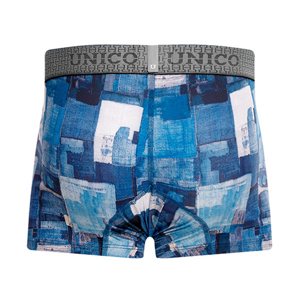 Deze Mundo Unico Trozo microfiber boxershort heeft een uniek blauw patchwork-design en een stijlvolle grijze tailleband met het merklogo. De zachte, elastische stof en ergonomische pouch bieden ultiem comfort en ondersteuning. Gemaakt van 80% polyester en 20% elastaan voor een perfecte pasvorm.