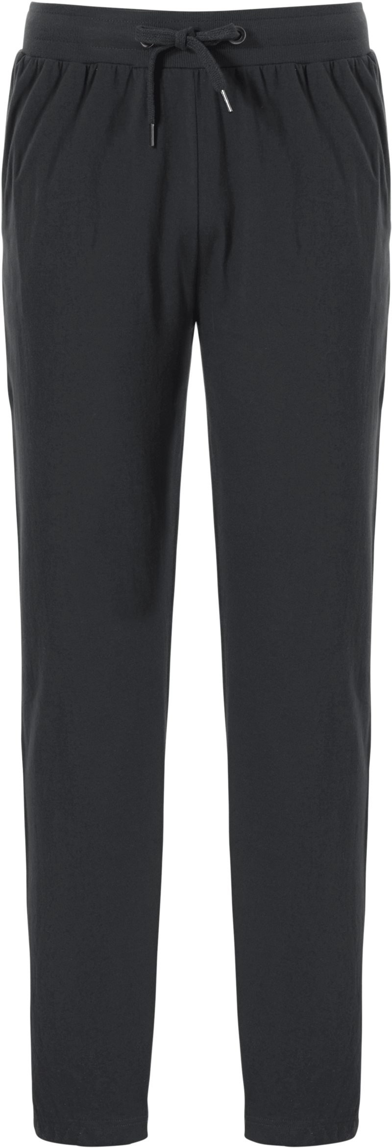 De broek heeft steekzakken aan de zijkant en een veterkoord in de brede tailleband.