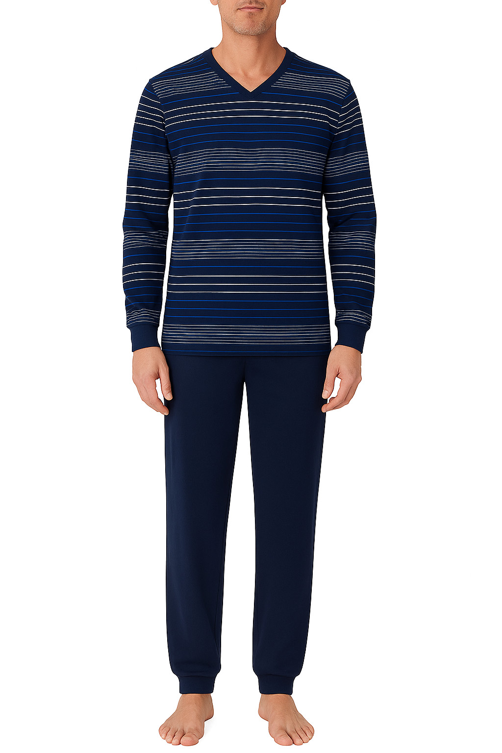 Pastunette Heren Pyjama Blauw Gestreept met V-hals