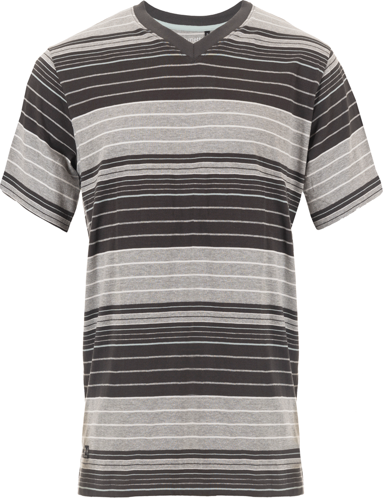 De shortama bestaat uit een antraciet gekleurde korte broek en een  pyjamashirt met korte mouwen en een V-hals. Het shirt is gestreept in zwarte en grijze kleuren. De pyjamabroek is voorzien van zakken aan de zijkanten en een veterkoord in de tailleband. Shortama's zijn ideaal voor als je het snachts snel warm hebt!