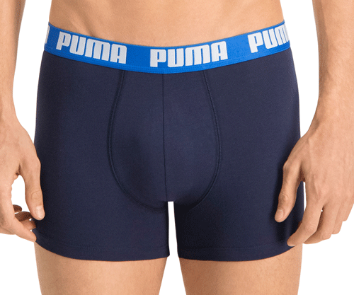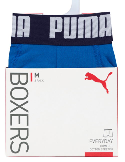 In de verpakking zit een blauwe en een donkerblauwe boxershort. De shorts zijn voorzien van een elastische tailleband met hierin het Puma merklogo verwerkt. Daarnaast hebben ze een aansluitende pasvorm en dragen ze comfortabel dankzij het gebruik van stretch katoen.