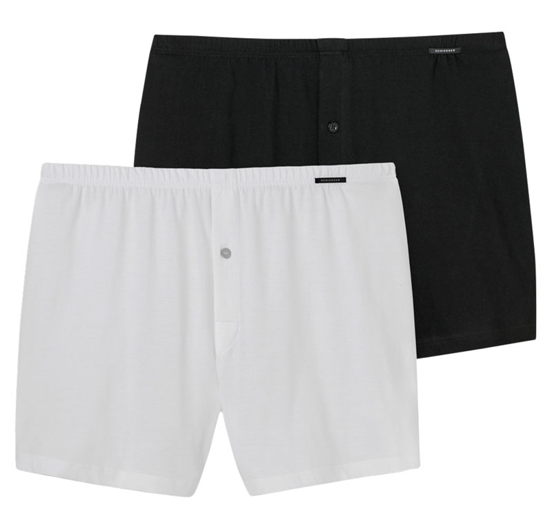Schiesser Boxer Jersey 2-pack wit-zwart