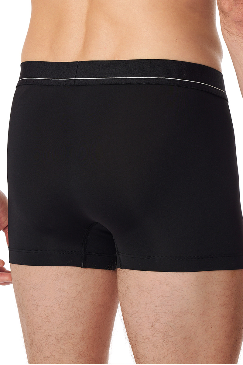 De korte broek voor heren in het zwart uit de Schiesser-serie "Pure Micro" biedt ultiem comfort dankzij de extra zachte en bedekte elastische tailleband. Dit duurzame ondergoed is gemaakt van gerecycled polyamide en heeft een nauwsluitende pasvorm zonder storende naden. De broek is vervaardigd uit bijzonder soepele en elastische jerseystof, wat zorgt voor een aangename draagervaring.