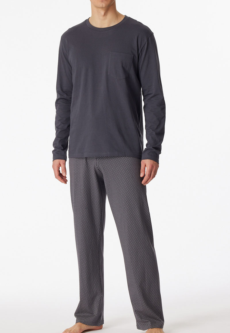 Productinformatie "Schiesser Pyjama effen shirt print broek"
