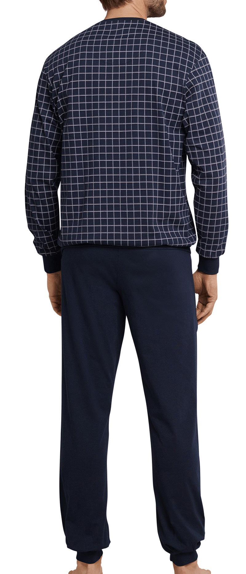 Ervaar tijdloze stijl en ultiem comfort met deze donkerblauw geruite Schiesser herenpyjama. Het klassieke ruitpatroon in diepe blauwtinten geeft de pyjama een verzorgde, stijlvolle uitstraling van kwaliteit én elegantie.