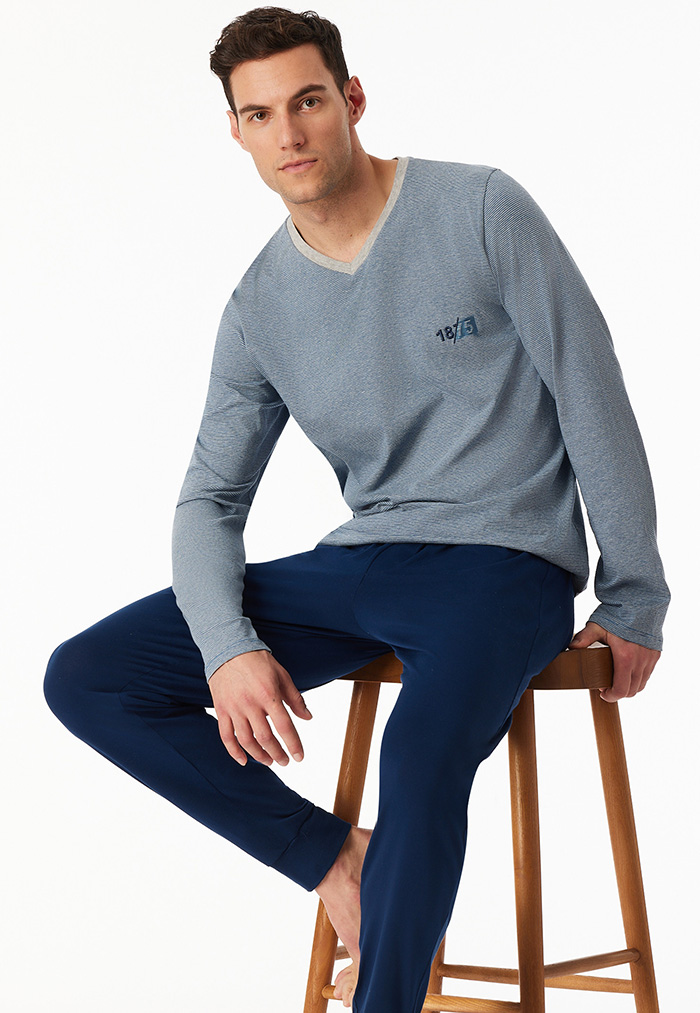 Productinformatie "Schiesser Pyjama stretch jeans blauw"