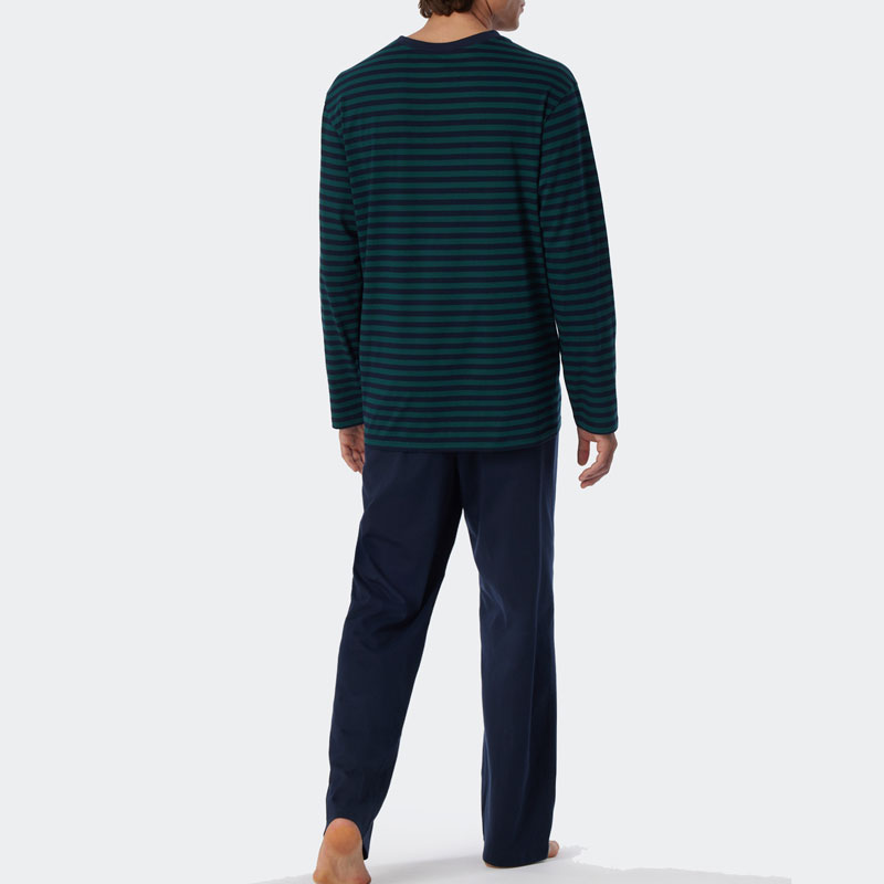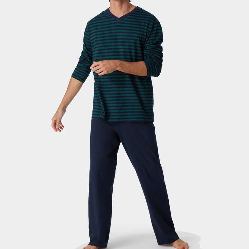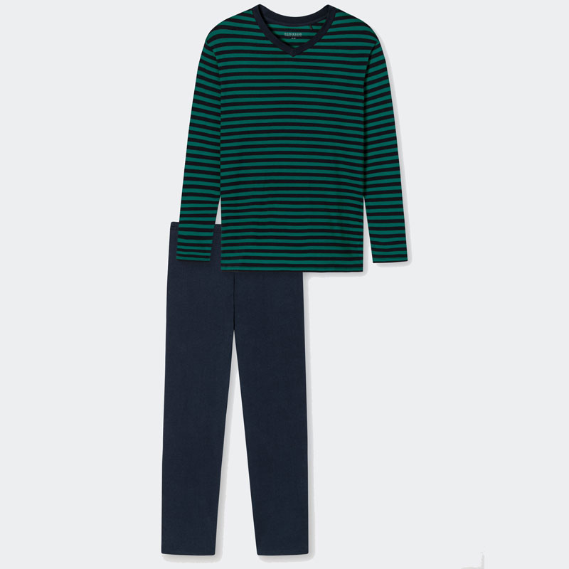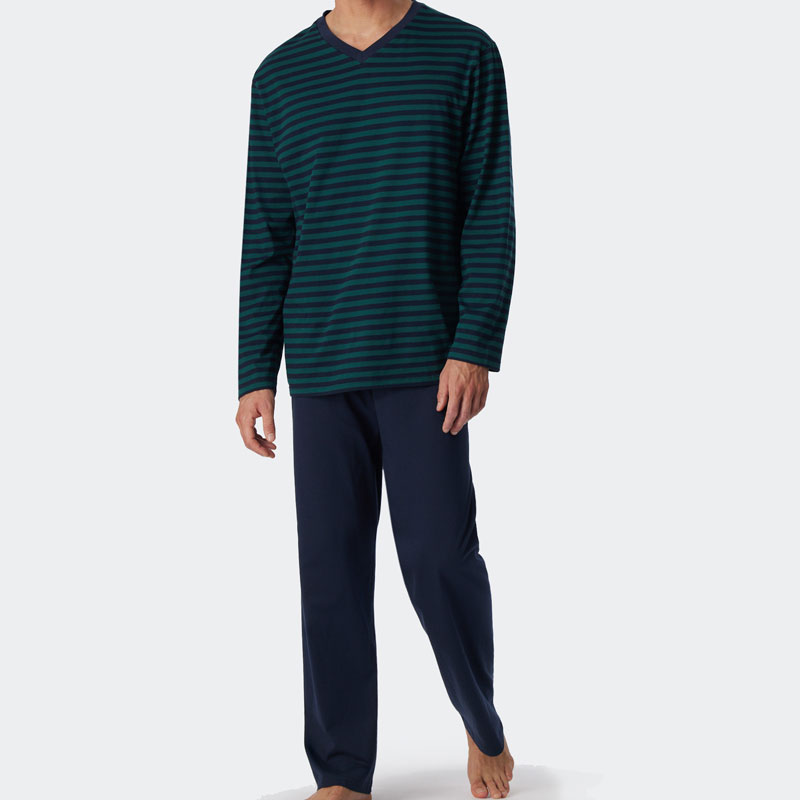 Schiesser Pyjama V-hals blauw-groen