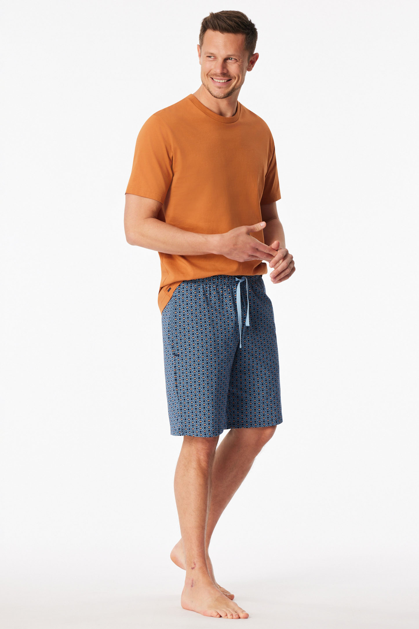 Schiesser Heren Pyjama short blauw met print