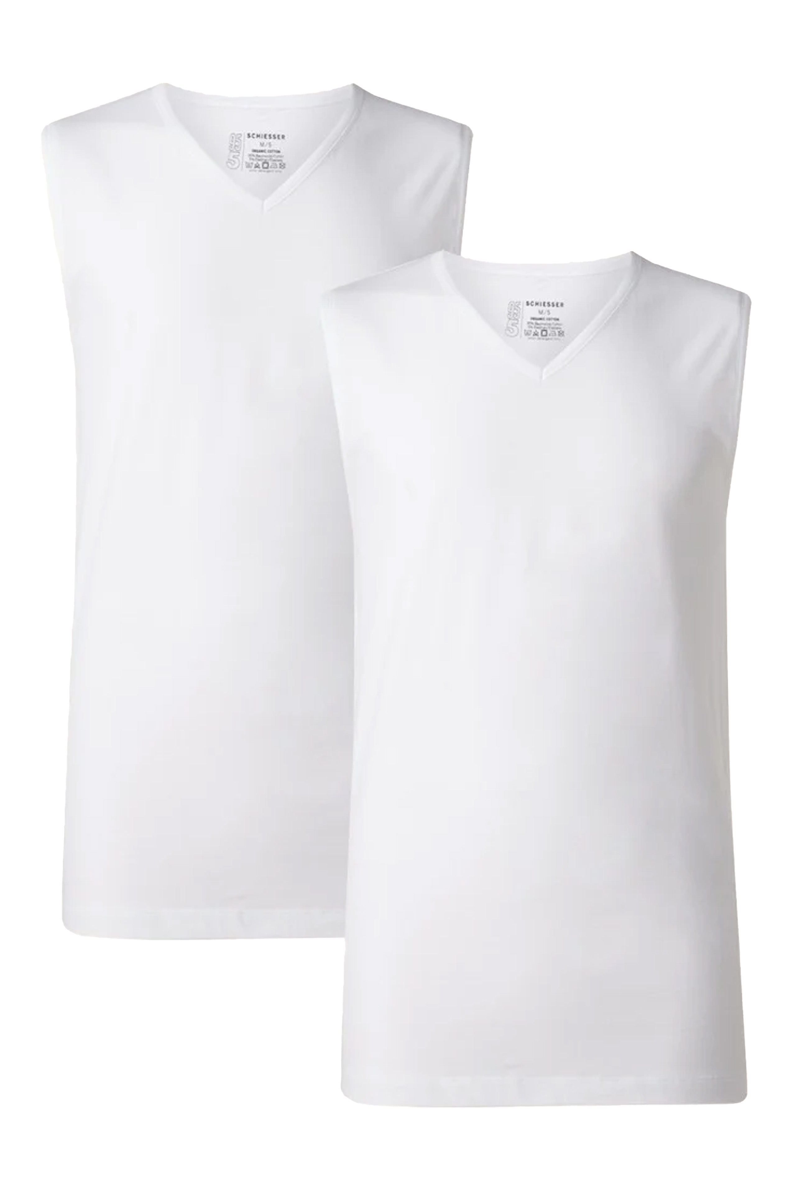 Schiesser Tanktop 95/5 V-hals 2-pack wit