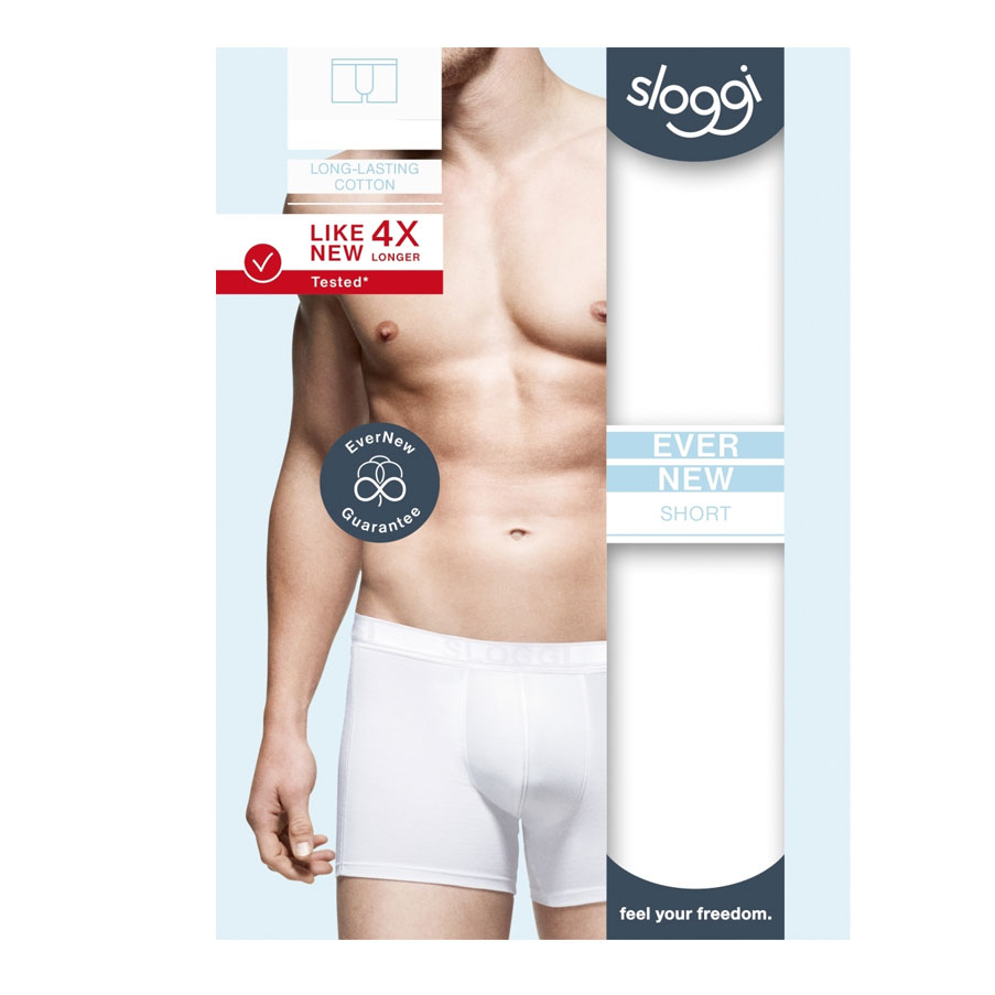 De boxershort heeft lange pijpjes en een elastische tailleband met Sloggi logo. Hij is voorzien van zachte randen op de beenuitsnijding en platte naden wat zorgt voor extra comfort. Daarnaast heeft de short een aansluitende pasvorm. De Sloggi Evernew Serie is gemaakt van Supima-katoen en maakt waar wat de naam belooft. hij blijft altijd mooi en gaat tot wel 4 keer langer mee dan gewoon katoen. Verkrijgbaar in het wit, zwart en grijs.